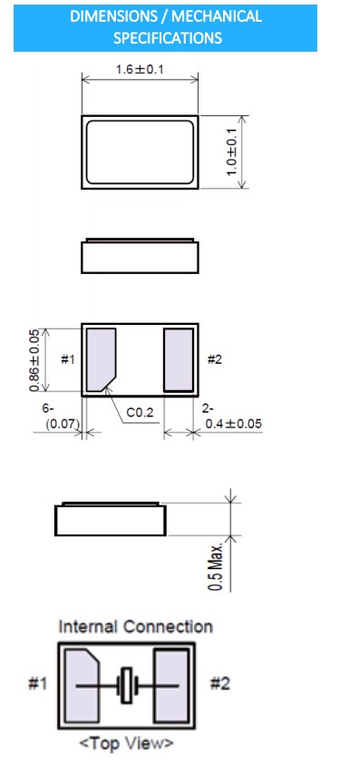 ELS05-32.768kHz-9-T,ELS05,1610mm,32.768KHz,AEL超小型晶振,尺寸图