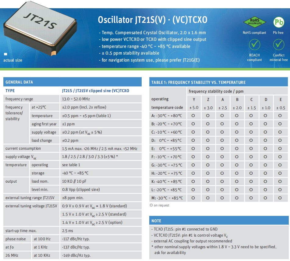 VCTCXO压控温补晶振O26.0-JT21SV-A-G-3.3-1.5-LF特别适用于6G物联网应用