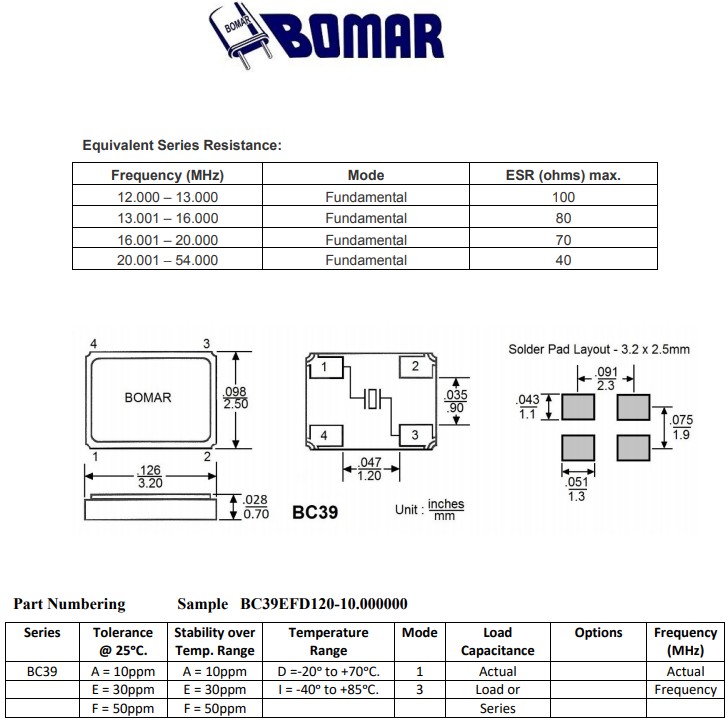 Bomar晶振,BC39晶振,BC39EFD120-10.000000晶振