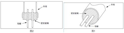 安装时的注意事项导脚型晶振• 构造圆柱型晶振 (VT, VTC) 用玻璃密封 (参阅图 1 和图 2).