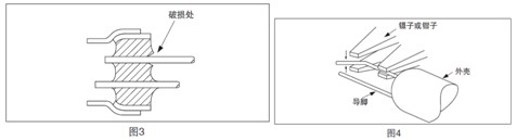 弯曲导脚的方法(1) 将导脚弯曲之后并进行焊接时,导脚上要留下离外壳0.5mm的直线部位.如果不留出导脚的直线部位而将导脚弯曲,有可能导致玻璃的破碎 (参阅图5 和图6).(2) 在导脚焊接完毕之后再将导脚弯曲时,务必请留出大于外壳直径长度的空闲部分 (参阅图7).