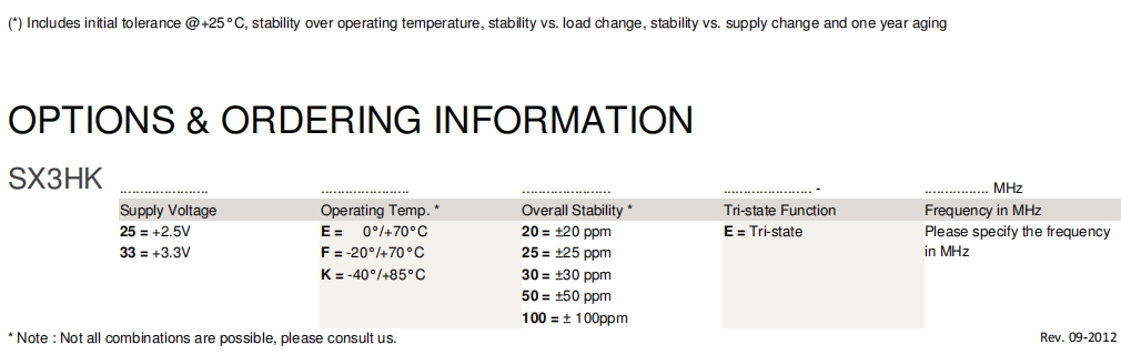 | Overall Frequency Stability* | ± 20 ppm ~ ± 100 ppm (see options) | |||||||