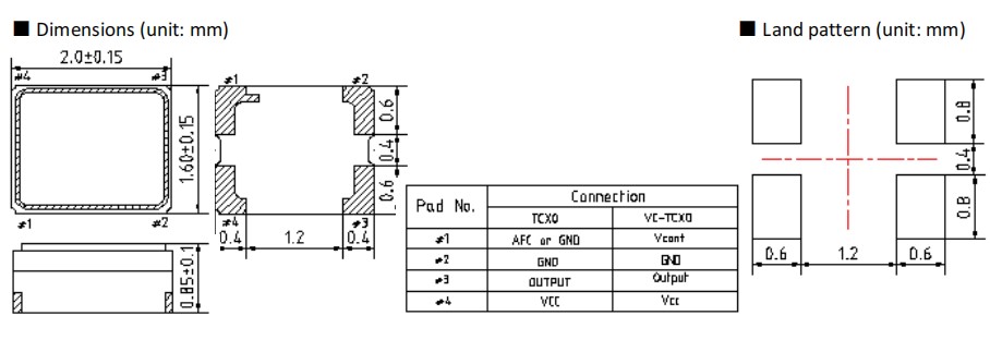 -2.0 x 1.6 x 0.85(最大)mm表面安装石英晶体单元
