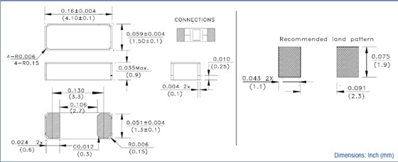 Cardinal晶振,32.768K时钟晶振,CX415贴片晶体