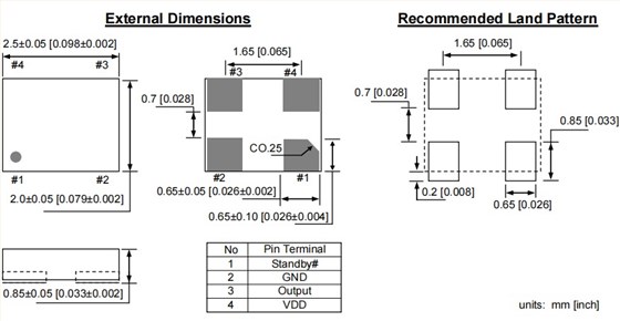 超微型足迹:2.5x2.0x0.85毫米,3.2x2.5x0.85毫米,5.0x3.2x0.85毫米,7.0x5.0x0.85毫米