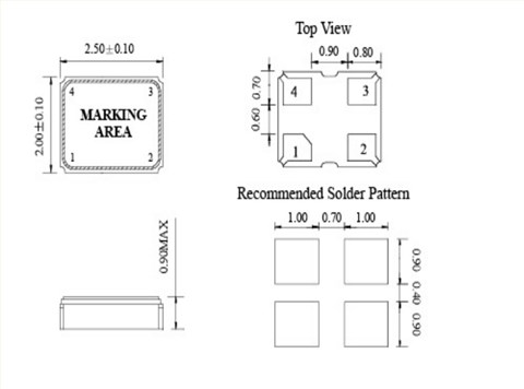 SX2CG-18K10E-54MHZ,FCD-Tech家庭网络晶振,2520mm,54MHZ,CMOS振荡器尺寸图